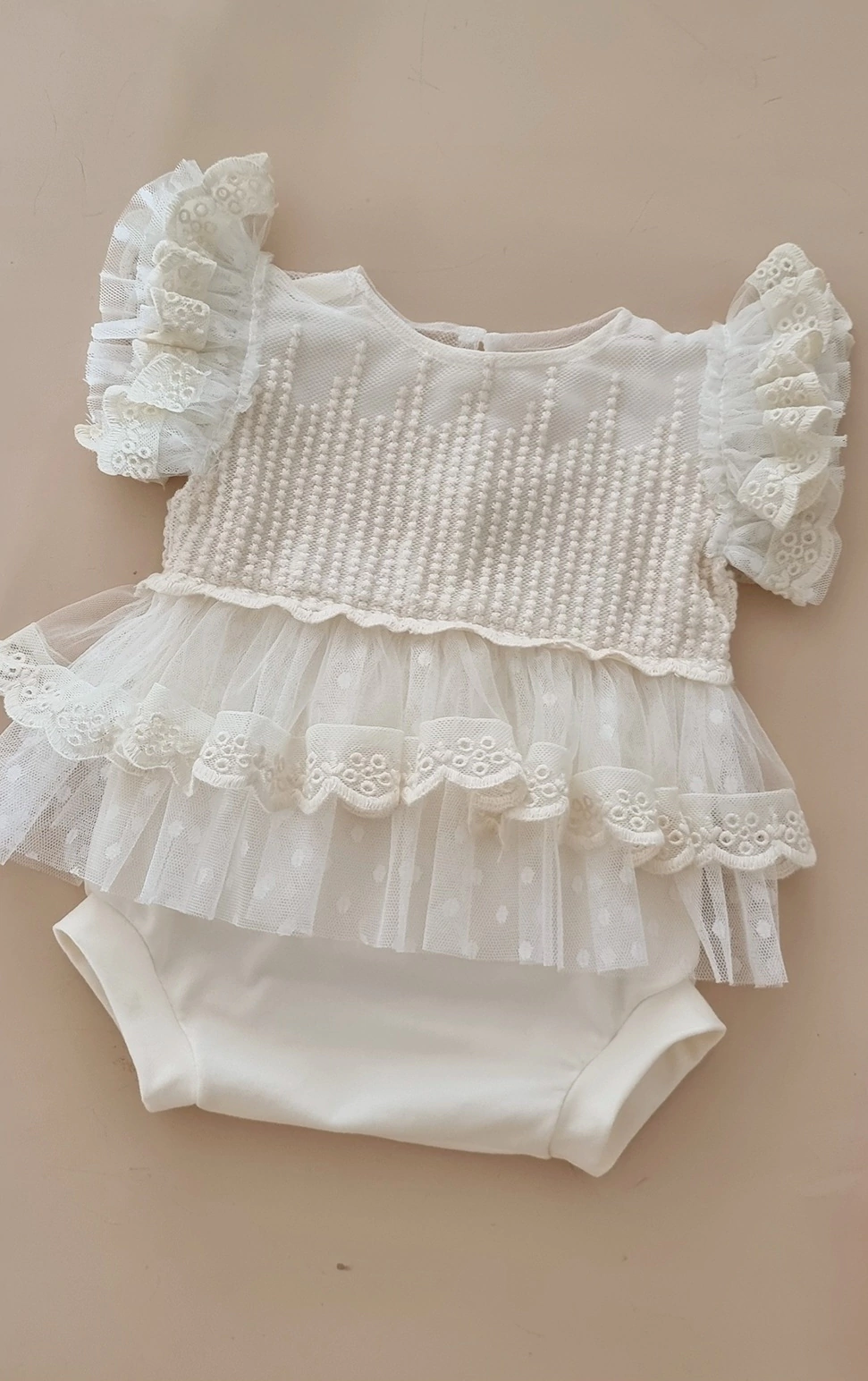 Um body muito delicado, elaborado com um mix de texturas. Use sua criatividade e inspire o mundo!