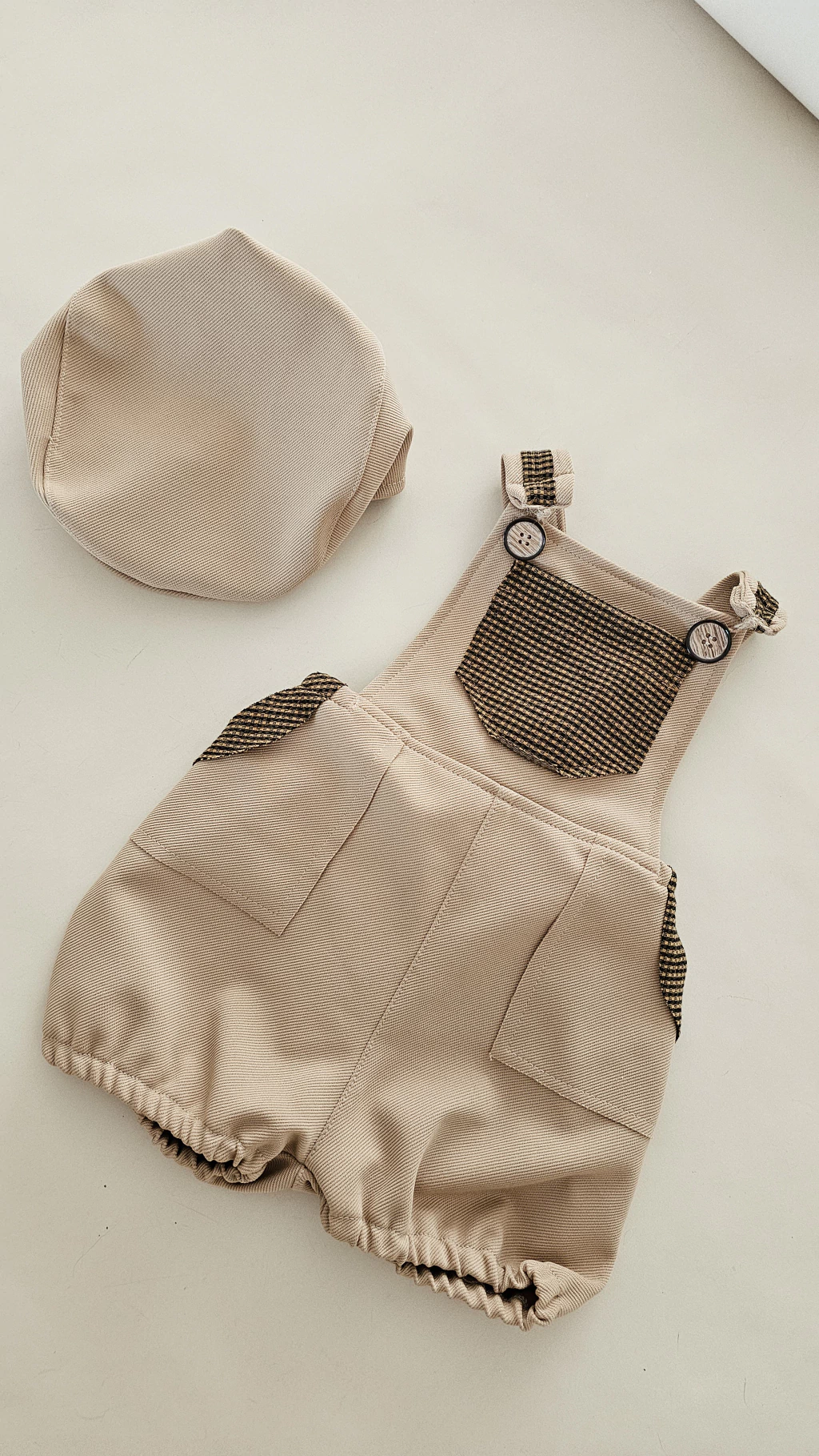 O Conjunto Edu traz a elegância dos tons nude escuro, perfeito para fotos de Natal e momentos especiais de acompanhamento. Combinando uma jardineira e uma boina delicada, essa peça oferece conforto e estilo para o bebê brilhar.