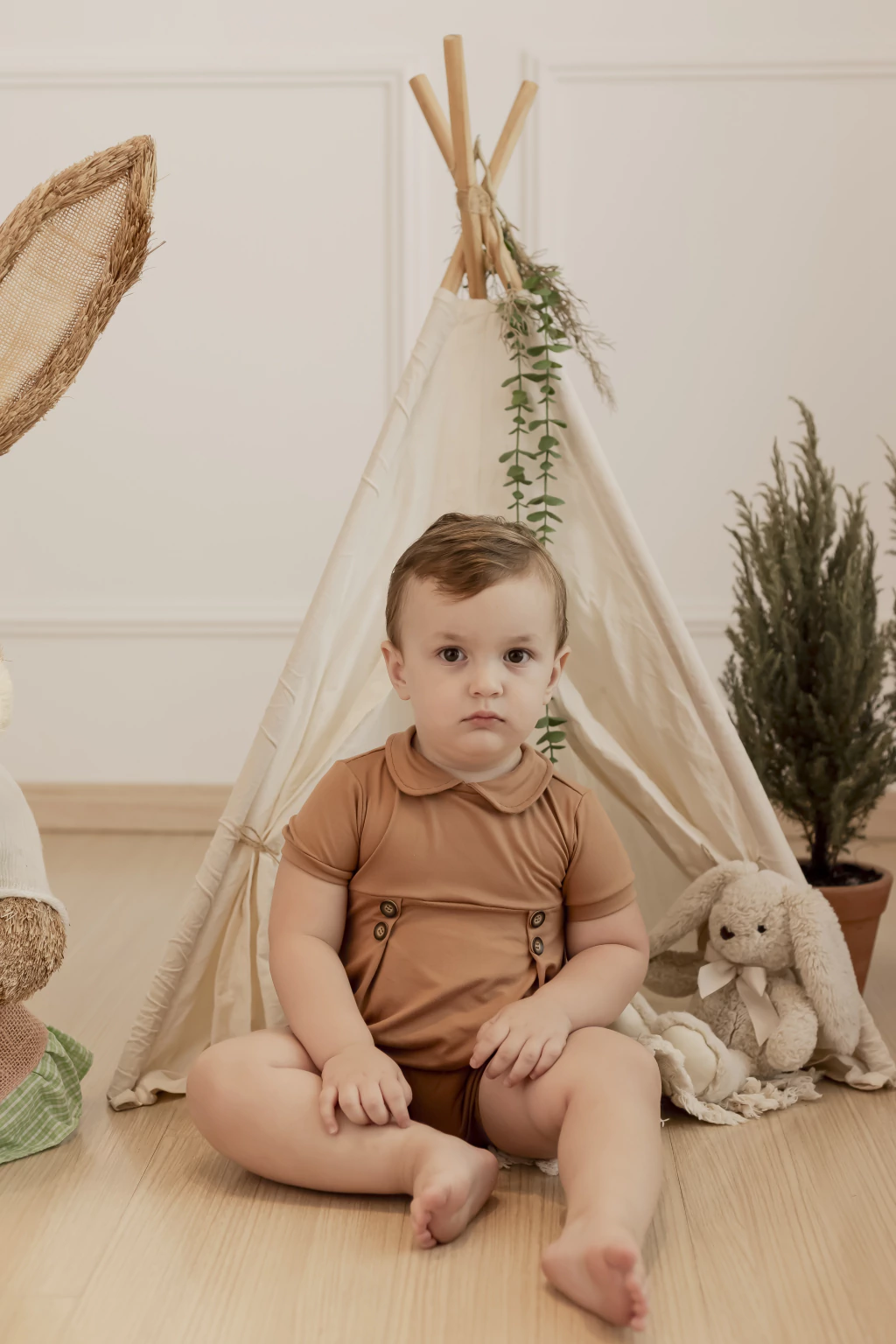 Macacão Nico é a escolha perfeita para o seu estúdio. Confeccionado em tecido macio com elasticidade, ele proporciona conforto e liberdade de movimento para os bebês. O estilo balonê e a gola redonda trazem um toque de charme e sofisticação.