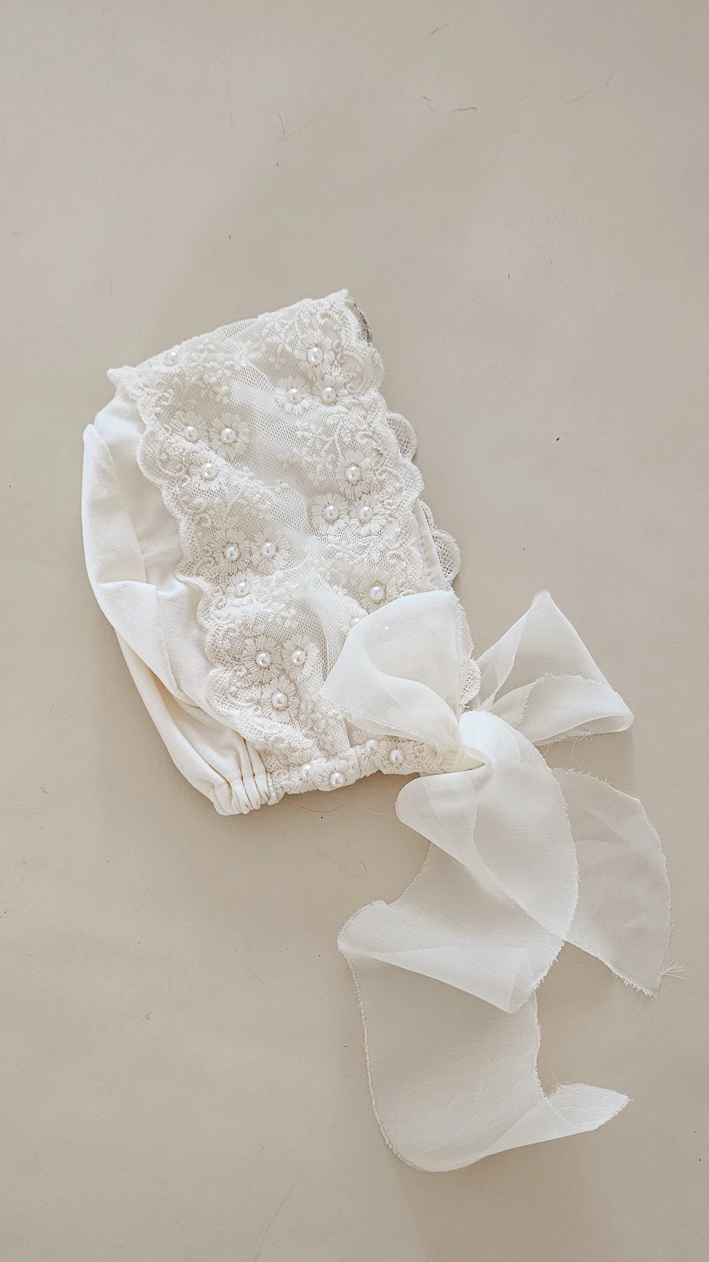 Touca em renda, tamanho: para bebês entre 6 a 12 meses.